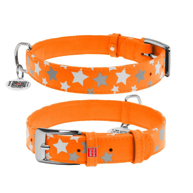 Нашийник для собак шкіряний WAUDOG з QR паспортом "Зірочка", Ш 25 мм, Довжина 38-49 см оранжевий