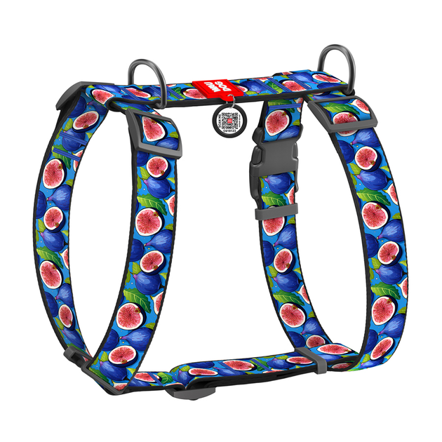 Шлей для собак анатомічний H-подібний WAUDOG Nylon з QR-паспортом малюнок "Інжир" пластиковий фастекс XL Ш 35 мм А 55-95 см