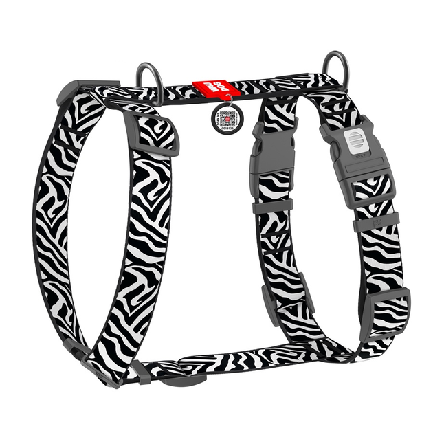 Шлей для собак анатомічний H-подібний WAUDOG Nylon з QR-паспортом, малюнок "Зебра", пластиковий фастекс, XL, Ш 35 мм, А 60-1