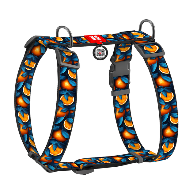 Шлей для собак анатомічний H-подібний WAUDOG Nylon з QR-паспортом малюнок "Апельсини" пластиковий фастекс XL Ш 35 мм А 55-95
