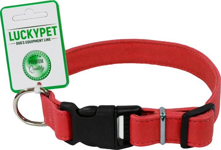Нашийник, шкіряний Lucky Pet, подвійний, пластикова фурнітура, 2.0/30-40, червоний (4820224217888)