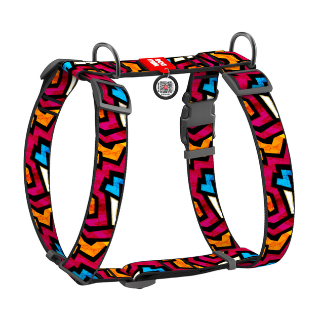 Шлея для собак анатомічна H-подібна WAUDOG Nylon з QR-паспортом, малюнок "Графіті", пластиковий фастекс, XL, Ш 35 мм, А 55-9