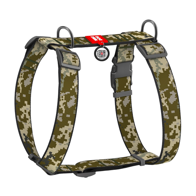 Шлейка анатомічна H-подібна для собак WAUDOG Nylon Мілітарі, з QR-паспортом, пластиковий фастекс, XL, ширина 35 мм, регулюва