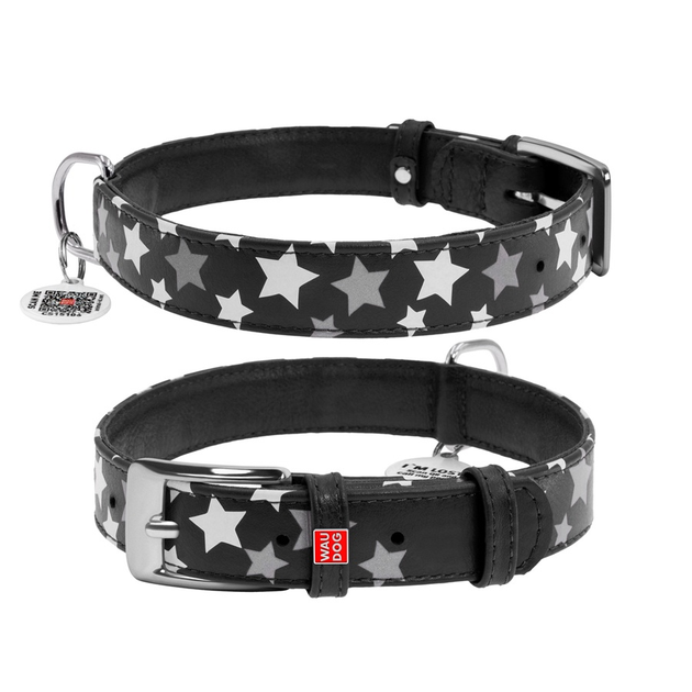 Шкіряний нашийник для собак WAUDOG Glamour з QR паспортом Зірочка світиться/світловідбиваючий L Ш 25 мм Д 38-49 см Black (35