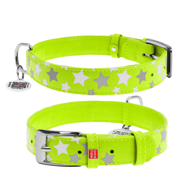 Шкіряний нашийник для собак WAUDOG Glamour з QR паспортом Зірочка світиться/світловідбиваючий L Ш 25 мм Д 38-49 см Green (35