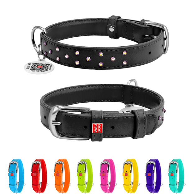 Нашийник для собак шкіряний WAUDOG Glamour з QR паспортом, з клейовими стразами, Ш 20 мм, Дов 30-39 см