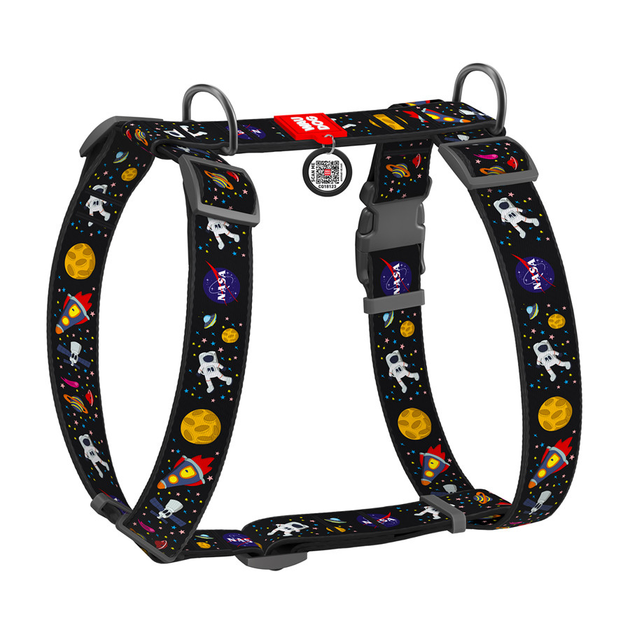 Шлея для собак анатомічна H-подібна WAUDOG Nylon з QR паспортом, малюнок "NASA", пластиковий фастекс, розмір XL