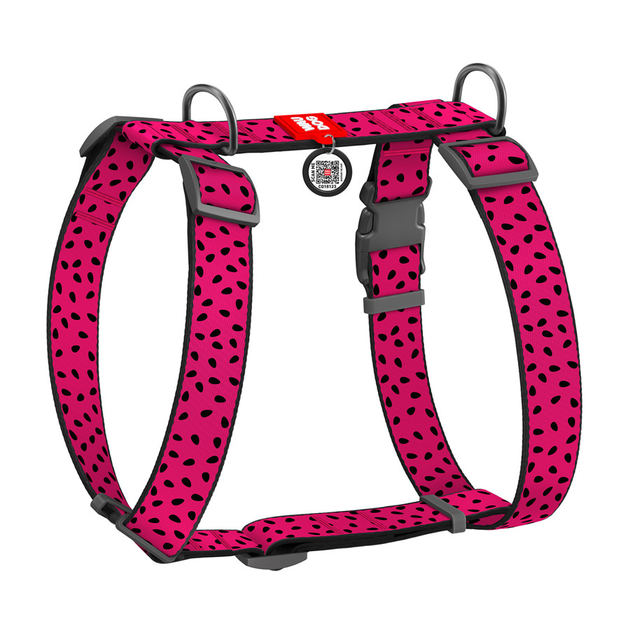Шлея для собак анатомічна H-подібна WAUDOG Nylon з QR-паспортом, малюнок "Кавун", пластиковий фастекс, XL, Ш 35 мм, А 55-95