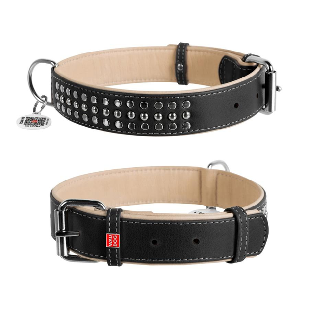 Шкіряний нашийник для собак WAUDOG Soft з QR паспортом металеві прикраси Ш 35 мм Д 46-60 см Black (7214)
