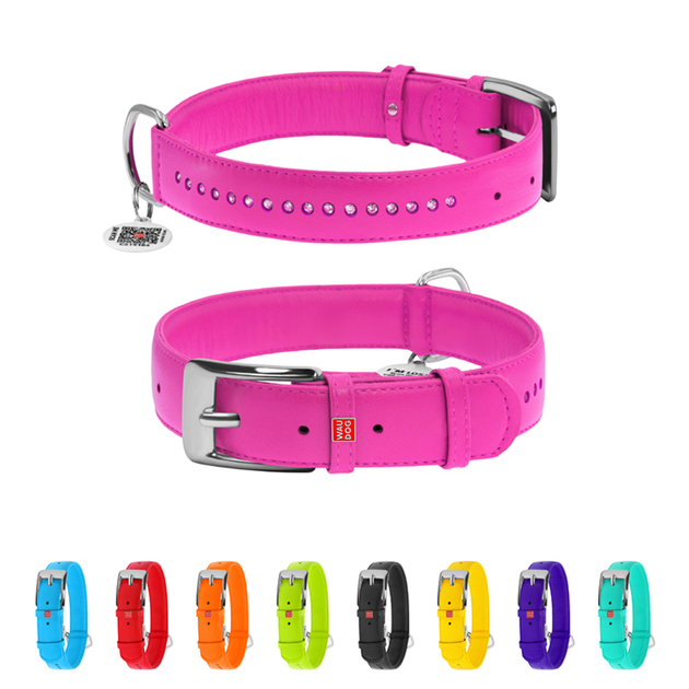 Нашийник для собак шкіряний WAUDOG Glamour з QR паспортом, подвійний зі стразами, XL, Ш 35 мм, Д 46-60 см, рожевий