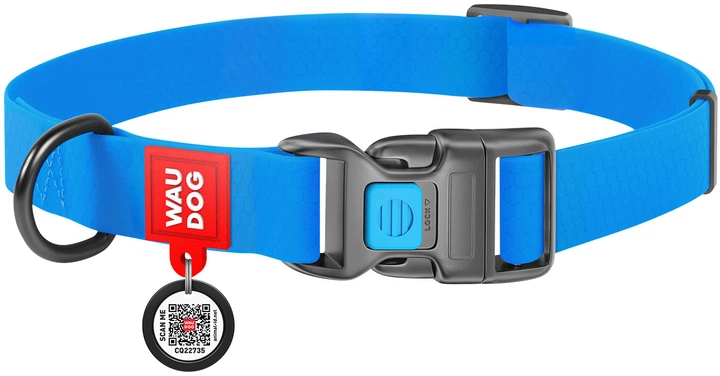 Нашийник для собак водостійкий WAUDOG Waterproof c QR паспортом пластикова пряжка-фастекс Ш 25 мм Дов 38-58 см Блакитний (27