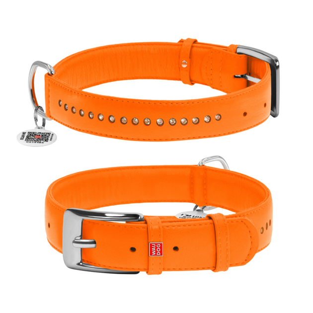 Нашийник для собак шкіряний WAUDOG Glamour з QR паспортом, подвійний зі стразами, Ш 20 мм, Дл 30-39 см, оранжевий