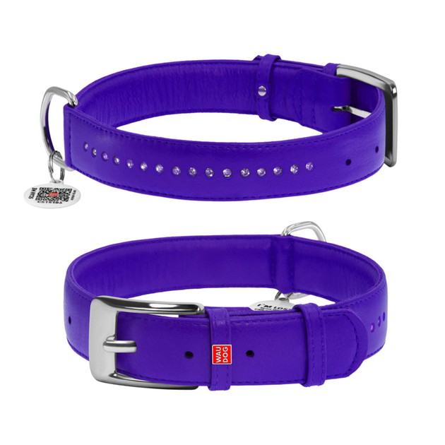Нашийник для собак шкіряний WAUDOG Glamour з QR паспортом, подвійний зі стразами, M, Ш 20 мм, Дов 30-39 см фіолетовий