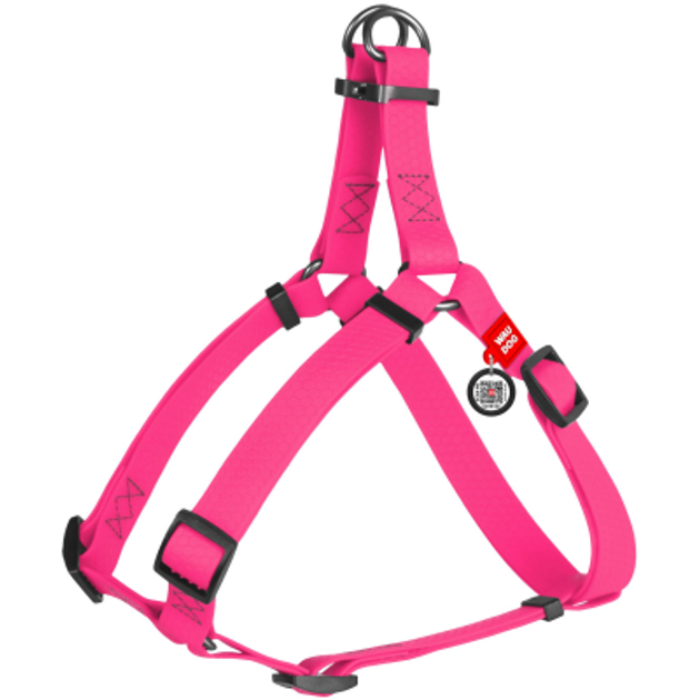 Шлея для собак WAUDOG Waterproof з QR-паспортом XS Ш 15 мм Д 30-39 см рожева (27637)