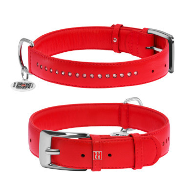 Нашийник для тварин WAUDOG Glamour з QR-паспортом, подвійний Ш 25 мм Д 38-49 см червоний (38783)