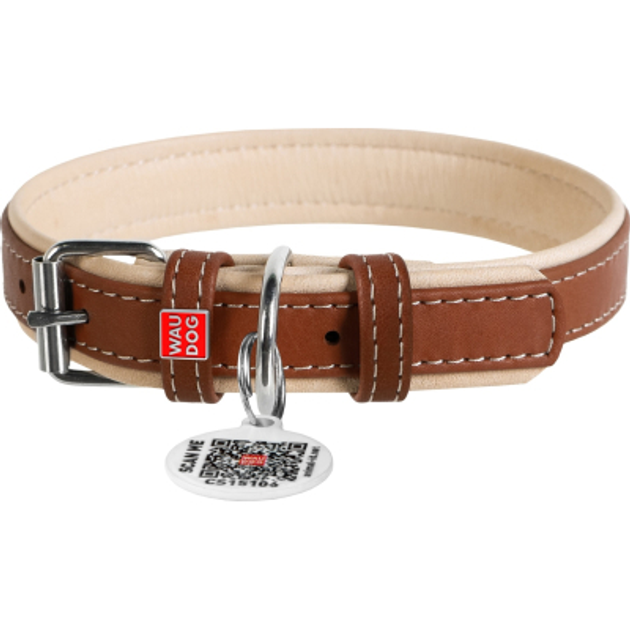 Нашийник для собак WAUDOG шкіряний Soft з QR паспортом, металеві прикраси, Ш 35 мм, Д 57-71 см, коричневий