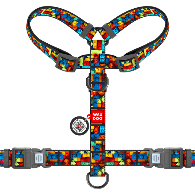 Шлея для собак анатомічна H-подібна WAUDOG Nylon з QR-паспортом, малюнок "Блоки", з двома фастексами, розмір XL