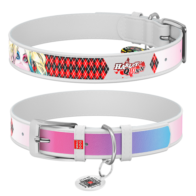 Нашийник для собак шкіряний WAUDOG Design з QR паспортом, Харлі Квін, Ш 35 мм, Д 46-59 см, білий