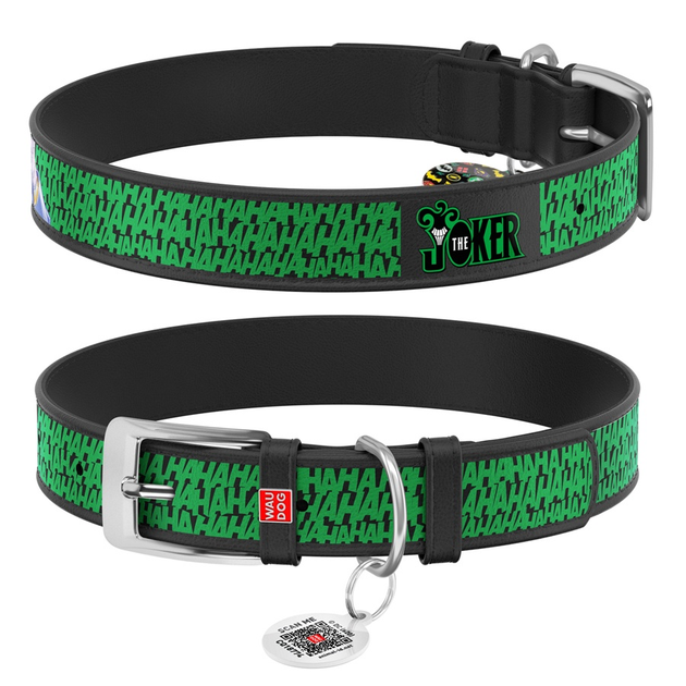 Шкіряний нашийник для собак WAUDOG Design з QR паспортом малюнок Джокер XL Ш 35 мм 46-59 см Black (0035-1001-01)