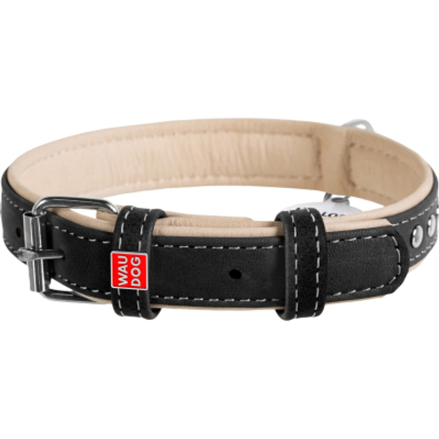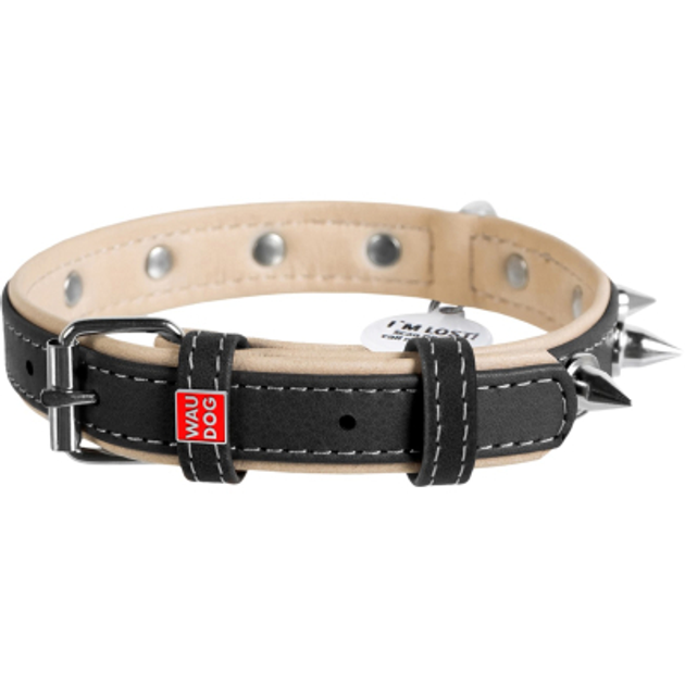 Нашийник для собак шкіряний WAUDOG Soft з QR паспортом, з шипами, Ш 25 мм, Дов 38-49 см чорний