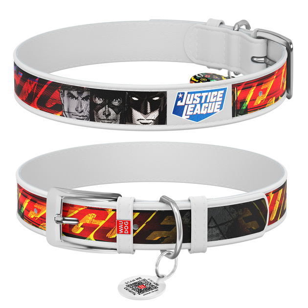 Нашийник для собак шкіряний WAUDOG Design з QR паспортом, Ліга СправеДивості, Ш 35 мм, Д 44-58 см, білий