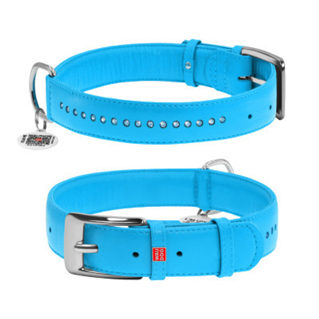 Нашийник для тварин WAUDOG Glamour з QR-паспортом, подвійний Ш 25 мм Д 38-49 см блакитний (38782)