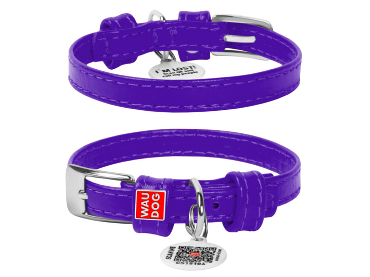 Ошейник для котів шкіряний WAUDOG Glamour з QR паспортом, без прикрас, XXS, Ш 9 мм, Дов 22-30 см фіолетовий