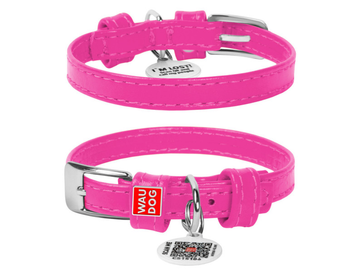 Нашийник для котів шкіряний WAUDOG Glamour з QR паспортом, без прикрас, Ш 9 мм, Дл 22-30 см, рожевий