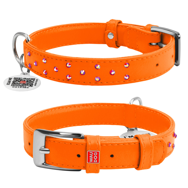 Нашийник для собак шкіряний WAUDOG Glamour з QR паспортом, з клейовими стразами, Ш 20 мм, Дов 30-39 см помаранчевий