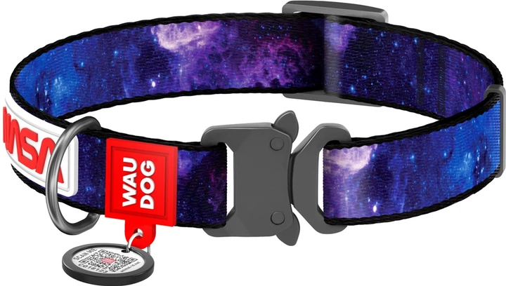 Нашийник для собак нейлоновий WAUDOG Nylon з QR-паспортом малюнок "NASA21" металева пряжка-фастекс L Ш 25 мм Д 33-49 см (450