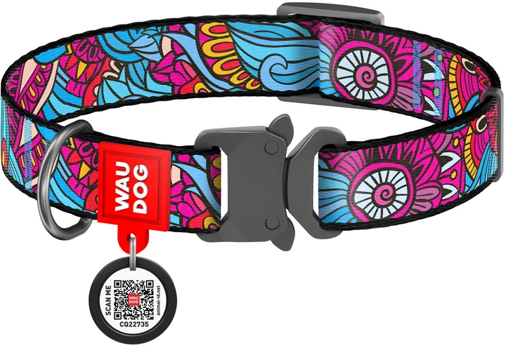 Нашийник для собак нейлоновий WAUDOG Nylon з QR паспортом малюнок "Вітраж" металічна пряжка-фастекс Ш 25 мм Дов 33-49 см (51