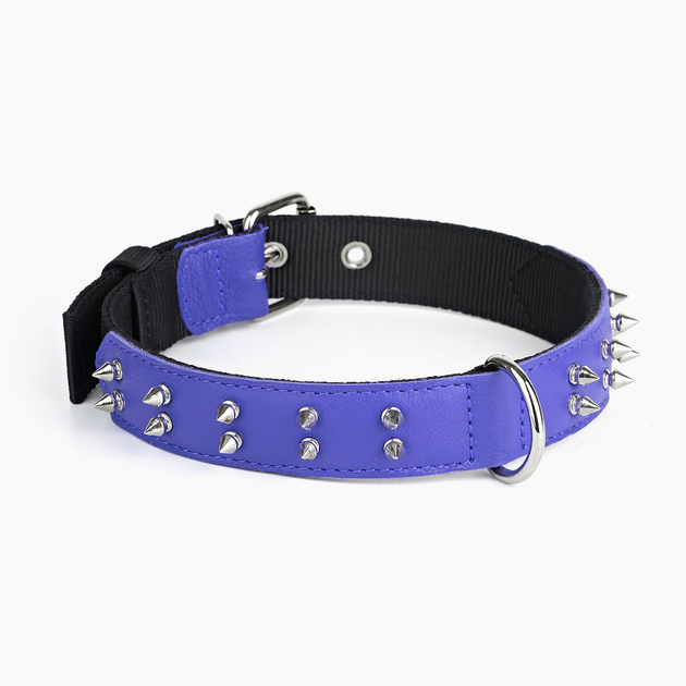 Нашийник KareLine з нейлону та натуральної шкіри з шипами 35 мм 410-510 мм Фіолетовий