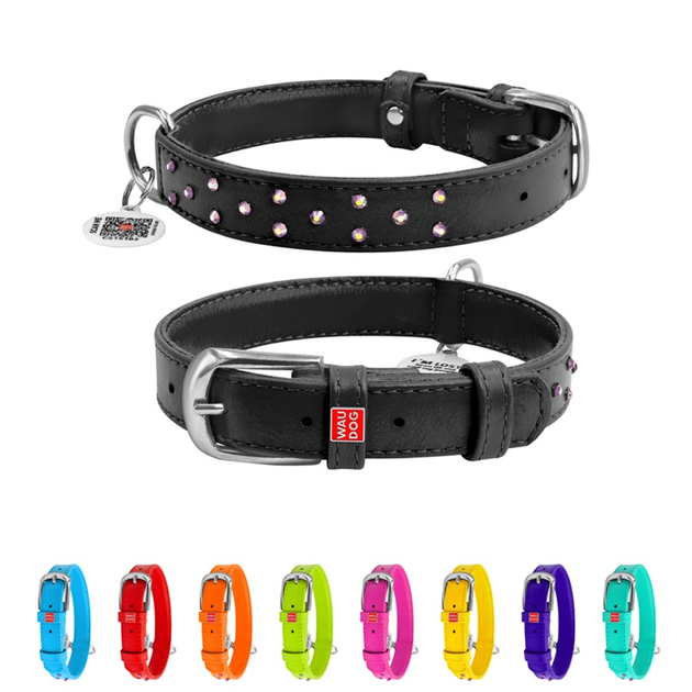 Нашийник для собак шкіряний WAUDOG Glamour з QR паспортом, з клейовими стразами, Ш 25 мм, Дов 38-49 см чорний