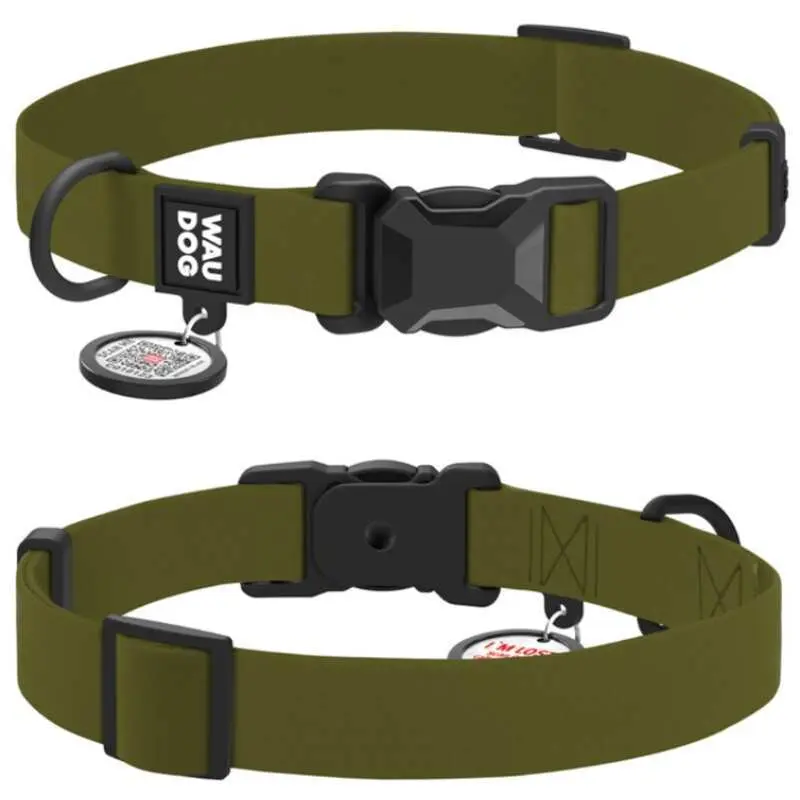 Нашийник для тварин WAUDOG Magnet c QR паспортом, магнітна пряжка-фастекс M хакі (279531) 279531