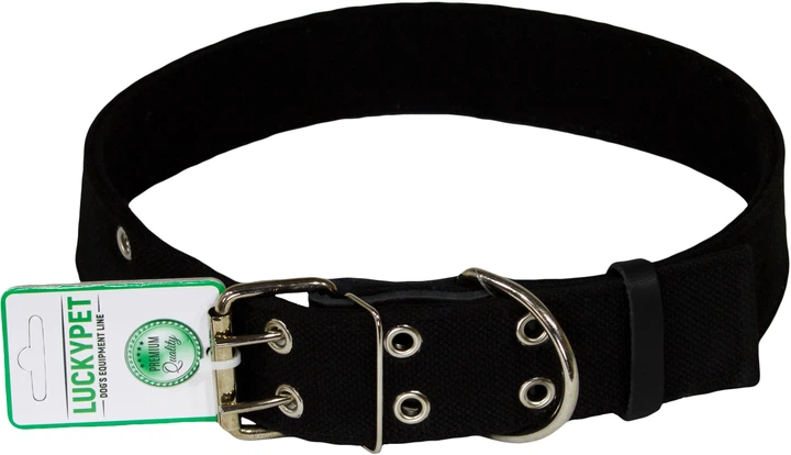 Нашийник брезентовий подвійний зі шкірою Lucky Pet 4.5/67-83 Чорний (4820224215709)