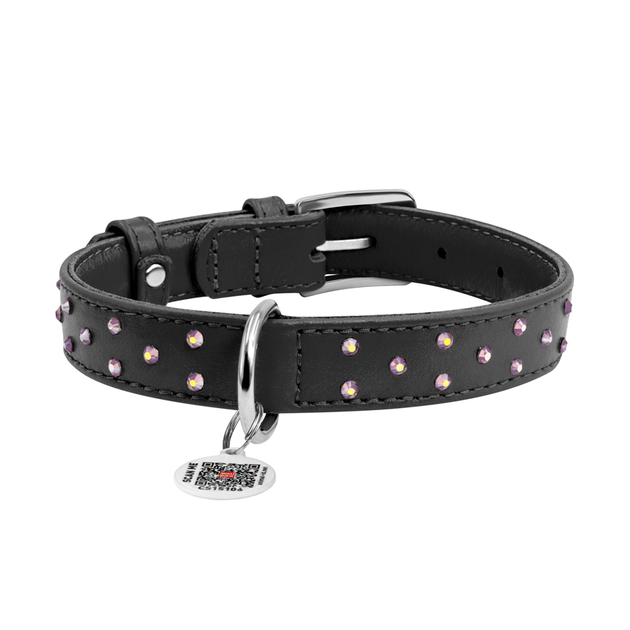Шкіряний нашийник для собак WAUDOG Glamour з клейовими стразами і QR паспортом Ш 25 мм Д 38-49 см Black (32791)