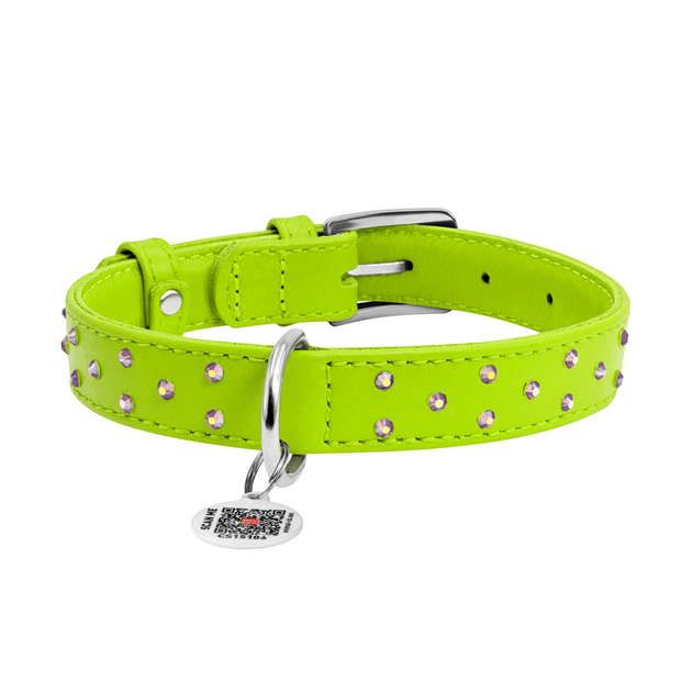 Шкіряний нашийник для собак WAUDOG Glamour з клейовими стразами і QR паспортом Ш 25 мм Д 38-49 см Green (32795)