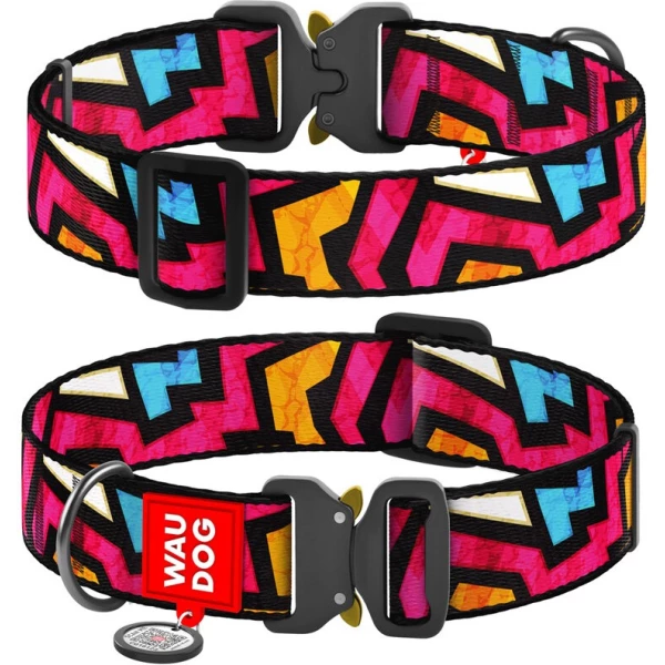 Нашийник для собак нейлоновий WAUDOG Nylon з QR паспортом, малюнок "Графіті", металева пряжка-фастекс, XXL, Ш 35 мм, Д 46-70