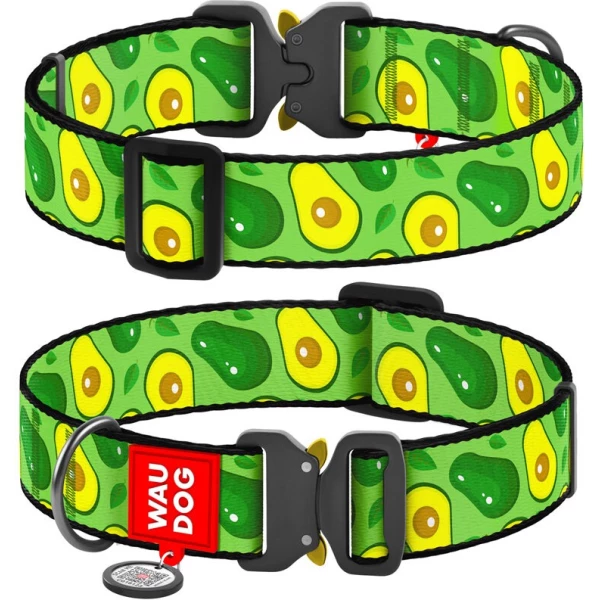 Нашийник для собак нейлоновий WAUDOG Nylon з QR паспортом, малюнок "Авокадо", металева пряжка-фастекс, XXL, Ш 35 мм, Д 46-70