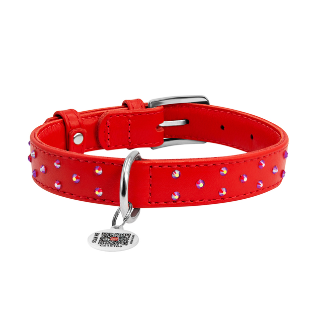 Шкіряний нашийник для собак WAUDOG Glamour з клейовими стразами і QR паспортом Ш 25 мм Д 38-49 см Red (32793)
