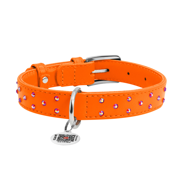 Шкіряний нашийник для собак WAUDOG Glamour з клейовими стразами і QR паспортом Ш 25 мм Д 38-49 см Orange (32794)