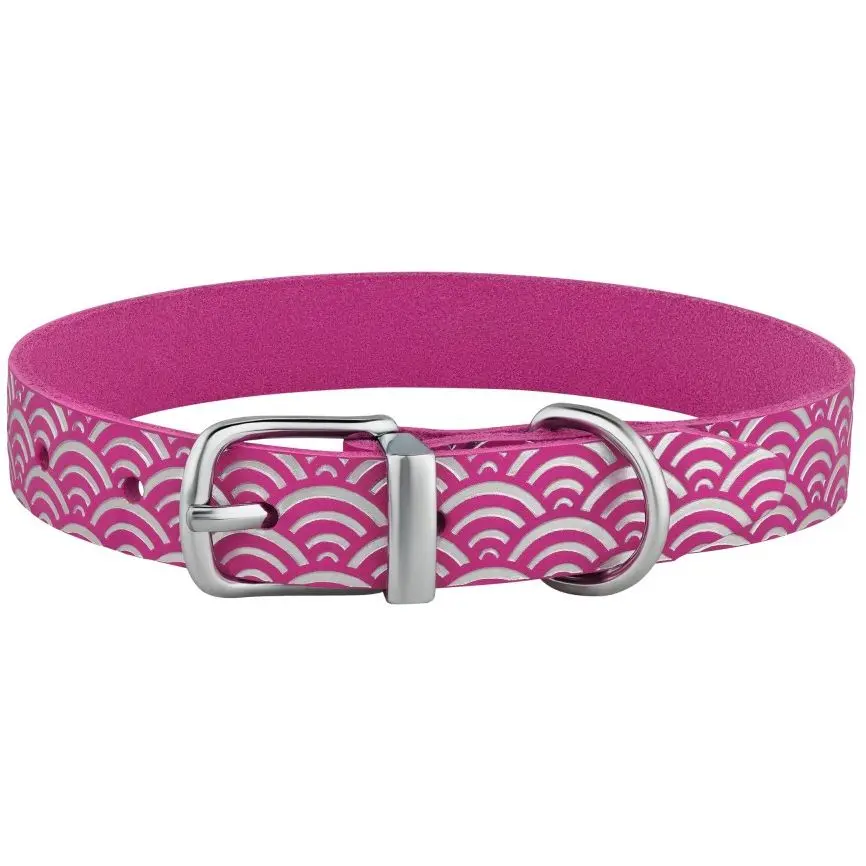 Нашийник для собак BronzeDog Barksi Classic Хвиля шкіряний одинарний зі срібним тисненням 18-25х1 см рожевий