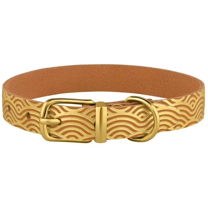 Нашийник для собак BronzeDog Barksi Classic Хвиля шкіряний одинарний із золотим тисненням 18-25х1 см гірчичний