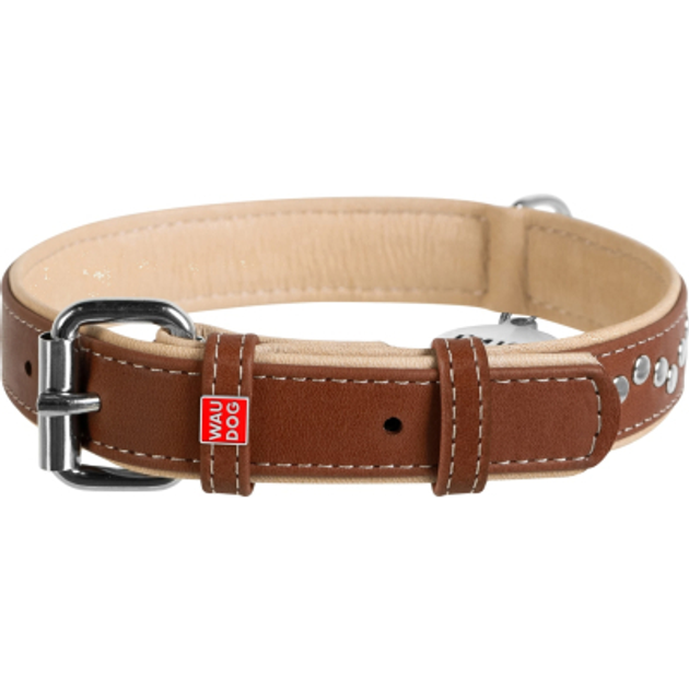 Нашийник для тварин WAUDOG Soft з QR паспортом металічні прикраси S коричневий (7197)
