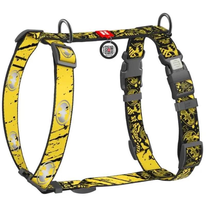 Шлея для собак WAUDOG Nylon H-подібна з QR-паспортом "Бетмен Ескіз", світловідбивна М (344-1081) 344-1081