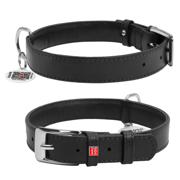 Нашийник для собак шкіряний WAUDOG Glamour з QR паспортом, круглий, Д 13 мм, Дл 53-63 см, чорний
