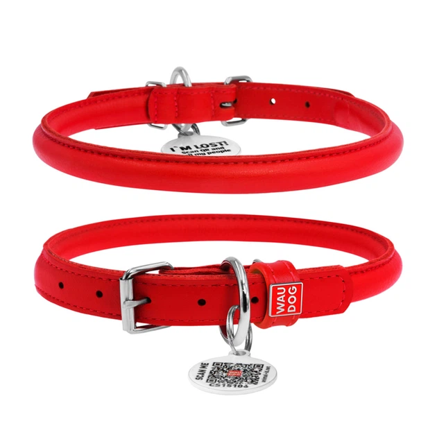 Нашийник для собак шкіряний WAUDOG Glamour Круглий Д 13 мм Дл 53-63 см червоний