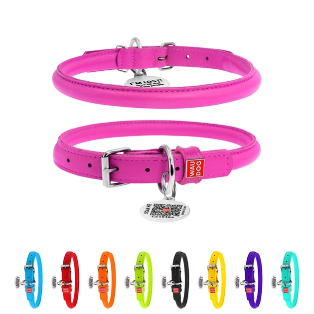Нашийник для собак шкіряний WAUDOG Glamour з QR паспортом, круглий, Д 13 мм, Дов 53-63 см рожевий