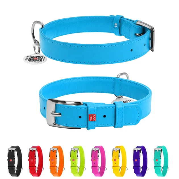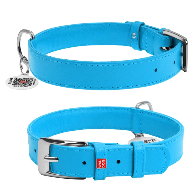 Ошейник для собак шкіряний WAUDOG Glamour з QR паспортом, без прикрас, M, Ш 20 мм, Дов 30-39 см блакитний