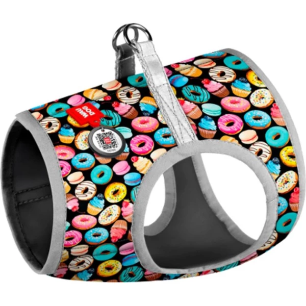 Шлея для собак м'який WAUDOG Clothes c QR паспортом, малюнок "Пончики", S1, 40-45 см, З 29-31 см(4823089320991) Акція!